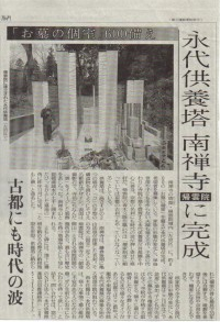 読売新聞|南禅寺帰雲院 永代供養塔ともし碑